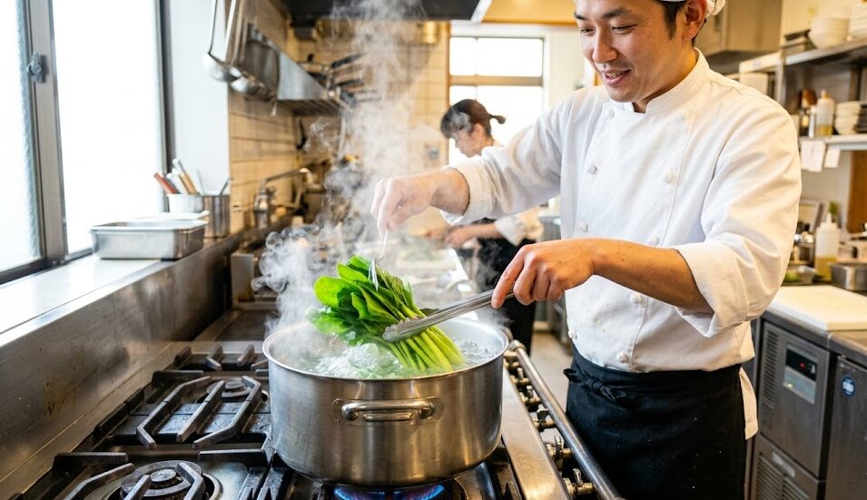 その最大の鍵を握るのが、「茹で時間」です。たった数秒の違いが、小松菜の運命を大きく左右します。