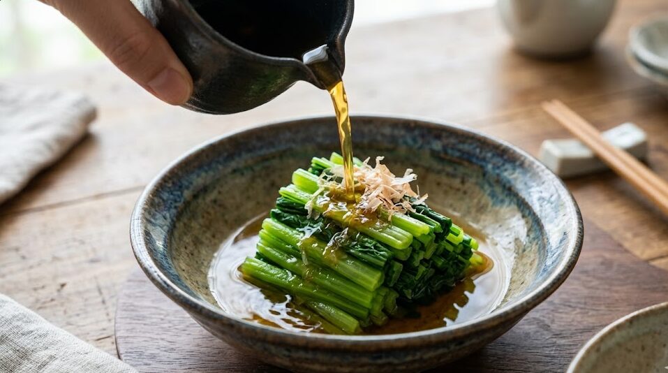 小松菜のおひたしの「味付け」黄金比!だし汁・醤油・みりんの完璧な割合