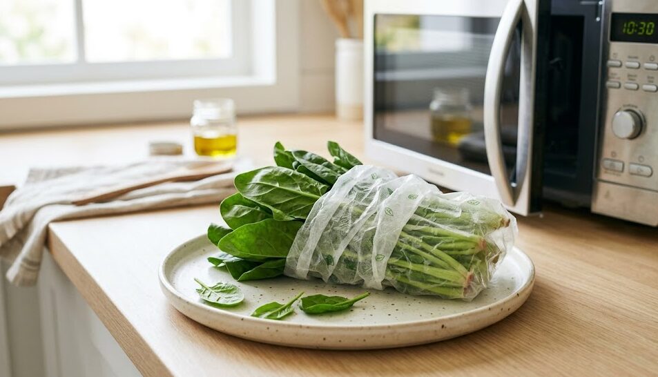 この「レンジ加熱 + 直後の水さらし」というコンボ技こそが最強の裏技です。レンジの高熱によってほうれん草の細胞壁はすでに破壊されているため、その直後に冷水にさらすことで、細胞内に閉じ込められていたシュウ酸が、驚くほどスピーディーに水の中へと溶け出していくのです。お湯を沸かす数分間を節約できるだけでなく、大量のお湯で茹でるよりも水溶性ビタミンCの流出を約半分以下に抑えられるという、栄養面での計り知れないメリットもあります。