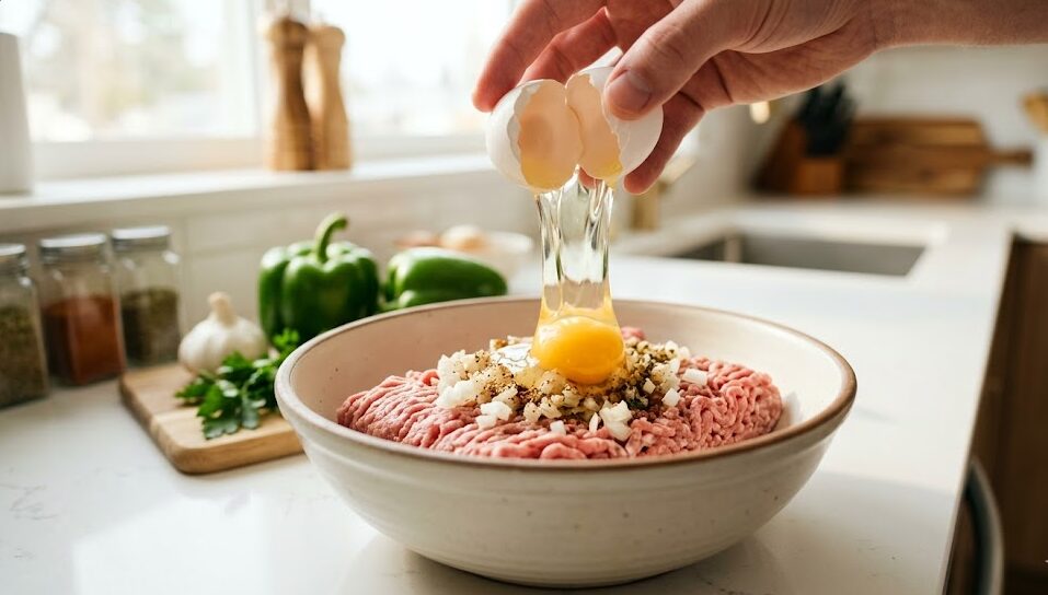 パン粉を省きつつも、さらに「ふっくら感」と「ジューシーさ」を追求したい場合、強力な助っ人となるのが「卵」です。パン粉がない分、お肉の密度が高くなりすぎて固く感じるのを防ぎ、肉汁をしっかりと抱え込んでくれる役割を果たします。ここでは、SNSやレシピサイトでも「絶品!」と話題になる、卵を使った黄金の肉だねレシピをご紹介します。